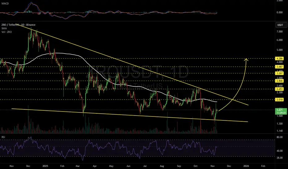 #ZRO is currently trading within a falling wedge pattern on the daily timeframe. In case of a breakout above the daily SMA100 and the wedge resistance, the potential upside targets are: