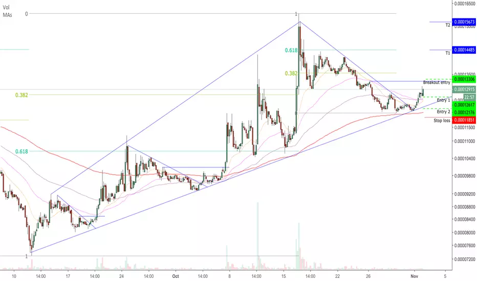 ZRX did it already two times in the past and is kind of forming ascending broadening wedge. In the last four days it formed also triple bottom and is currently above all MAs on 4H timeframe, riding nice above 200 MA.