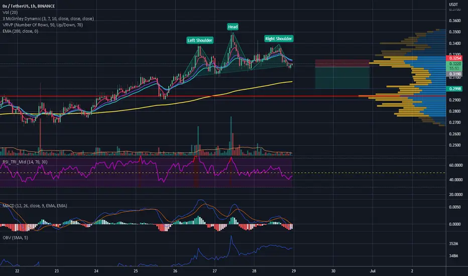 Clear H&S on ZRX and volume is currently plummeting. Indicators confirms.