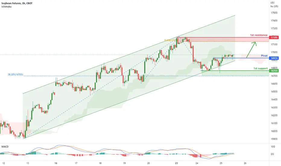 Preferred Case: With MACD moving in a bullish momentum and prices breaking the ichimoku cloud , we have a bullish bias that price will rise to our 1st resistance at