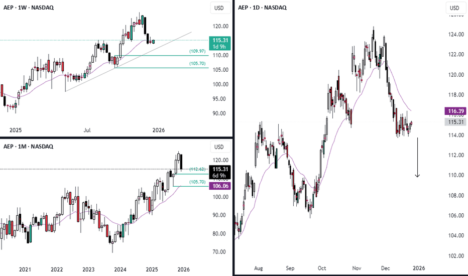 On the Monthly and Weekly charts, #AEP remains in a well-defined bullish structure, printing higher highs and higher lows.