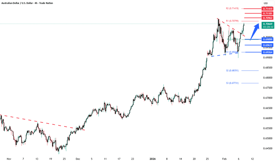 A bullish rebound from 0.6990 would confirm ongoing upside momentum, with potential targets at:
