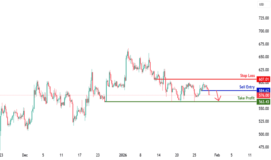 Our stop loss is set at 607.01, which is a pullback resistance.