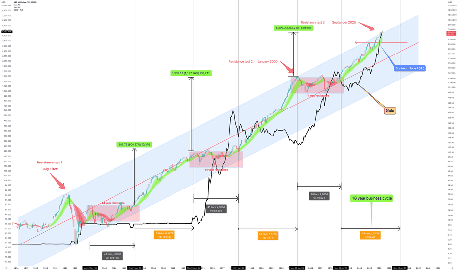 2. Bear markets are separated by 18 year business cycles, this is a well known economic fact (the space between the pink boxes).