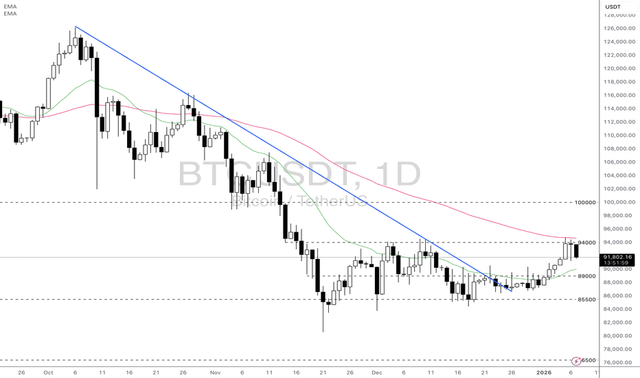 My primary scenario: long bias remains valid as long as BTCUSDT holds above the 89,600 Demand Zone and no strong bearish acceptance occurs below this level. I expect buyers to continue defending the demand area, forming a higher low or showing a clear bullish reaction (long lower wicks, impulsive bounce, or an internal break of structure). Once buyer strength is confirmed, a move toward: TP1: a retest of the 91,800 Supply Zone. TP2: in case of a clean breakout and acceptance above 91,800, continuation toward new local highs. Manage your risk!