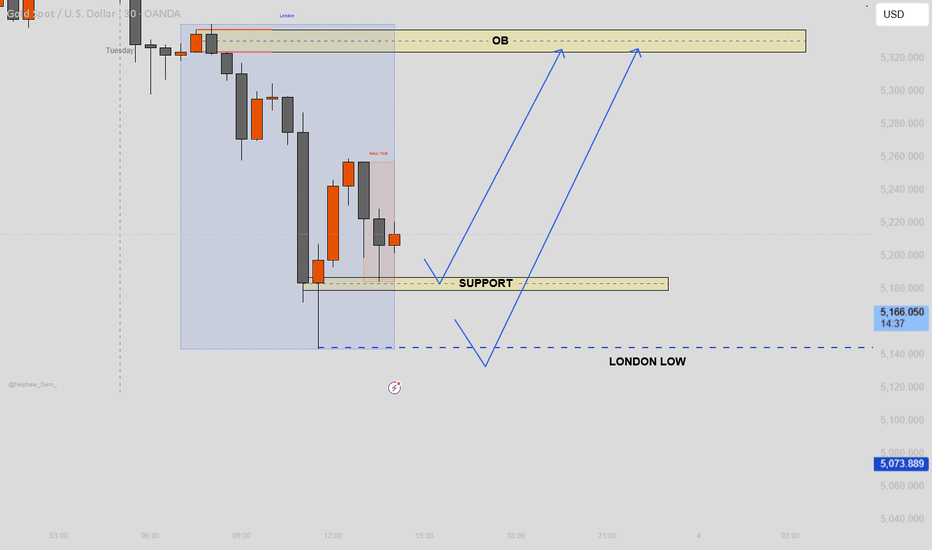 ICT Liquidity Sweep & High-Probability Reversal SetupPrice is reacting from the marked support zone after a strong sell-off, suggesting buyers are stepping in at a key demand area 📈. An ICT-style liquidity sweep toward the London Low may occur to grab sell-side liquidity before a true bullish expansion begins 🔄🏦. This sweep can create the fuel needed for a stronger reversal.