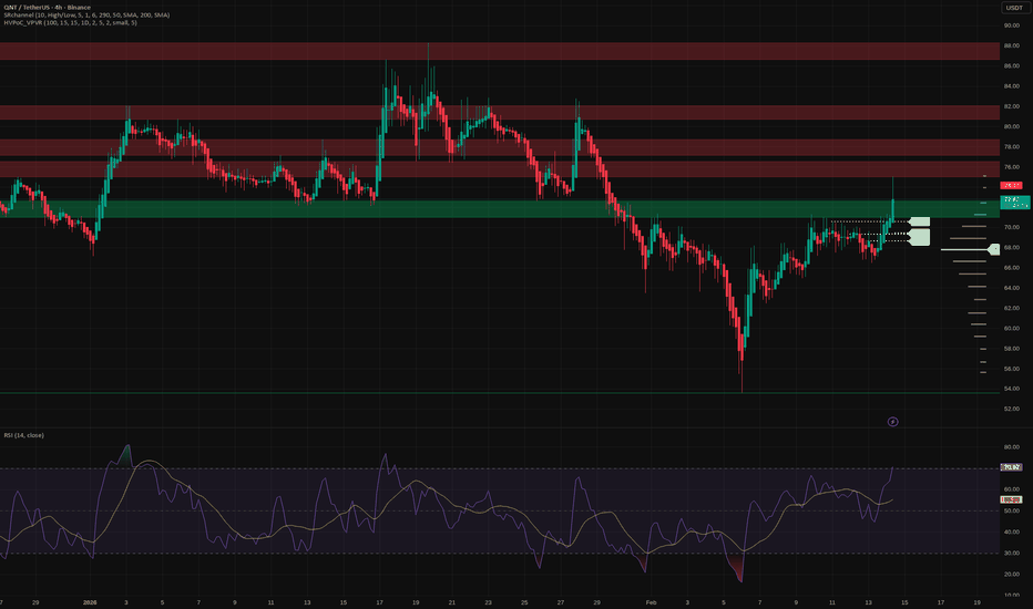 My plan: I prefer longs on a retest of 70-71 or a tight consolidation just under 74, with 🎯 focus on 76 first, then 79-80 if the trend stays clean. ✅ As long as 70 holds on 4H closes, bulls keep the ball. ⚠️ If price dives back under 69 and closes below 68.5, I’ll treat it as a fakeout and look for 64 and lower liquidity. I might be wrong, but right now QNT finally looks ready to stretch its legs.