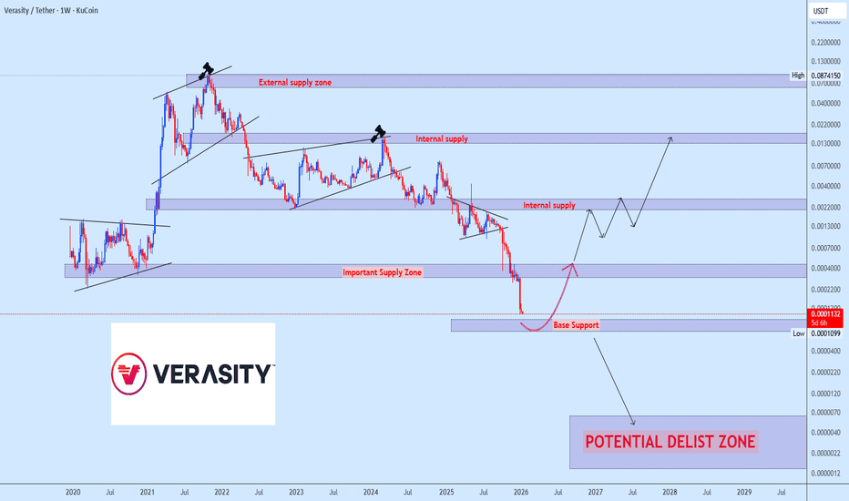 VRAusdt at Risk Key Support Under PressureVRA remains under sustained downside pressure, with price now approaching a critical support base that must hold to preserve the broader structure. This zone represents a key inflection point; failure to defend it would significantly weaken market confidence and could accelerate further downside risk.