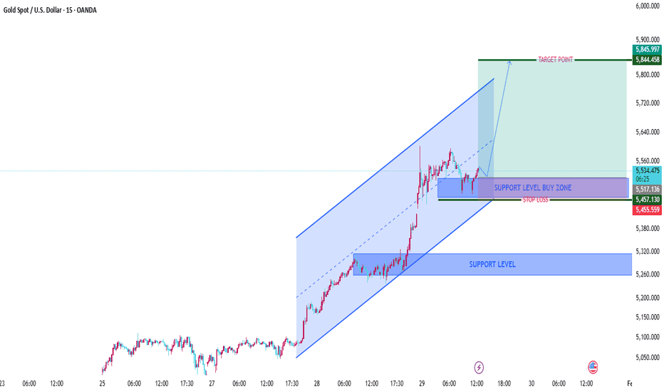 XAUUSD Bullish Continuation Setup (15M)Support Level Buy Zone: 5,470 – 5,455