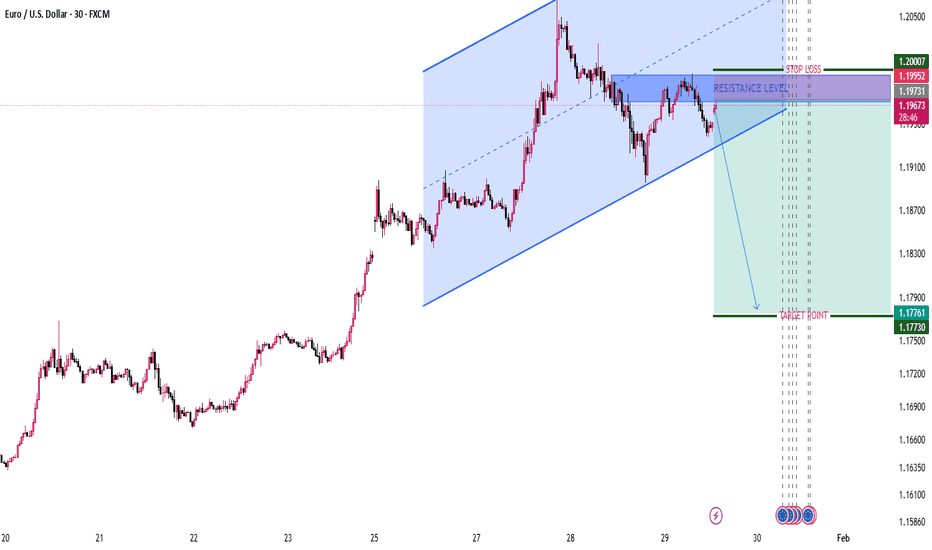 EURUSD Bearish Rejection from Channel Resistance (30M)Key Levels