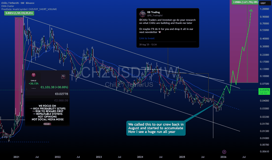 Back in late summer, we identified CHZ as a high-probability setup and shared it with the crew. The technical structure was clean, the risk-to-reward was favorable, and the timing aligned with our broader market outlook.