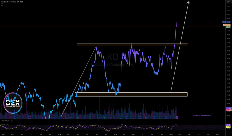 Coca Cola - $78 Target for New Highs Imminent 🥤The Coca-Cola Company (KO) suggests the stock has definitively finished a long period of price correction and is now ready for a significant upward trend. This pullback, which had been complex, officially concluded when the price hit its low at $65.36. Critically, the strong bounce that followed has broken the stock out of its long-term downward trading range, confirming that the selling phase is fully over.