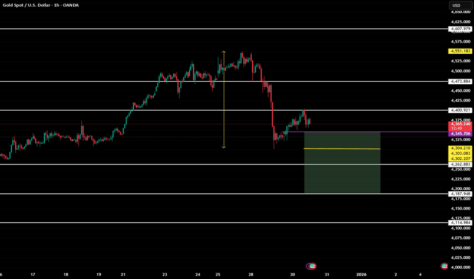 OANDA:XAUUSD is currently trading in a critical transition zone following a sharp rejection from the all-time high (ATH) near 4,550. The sell-off from this level was impulsive and decisive, indicating strong profit-taking and distribution at premium prices. However, the subsequent price action shows stabilization rather than continuation, suggesting the market has entered a rebalancing phase after extreme volatility.