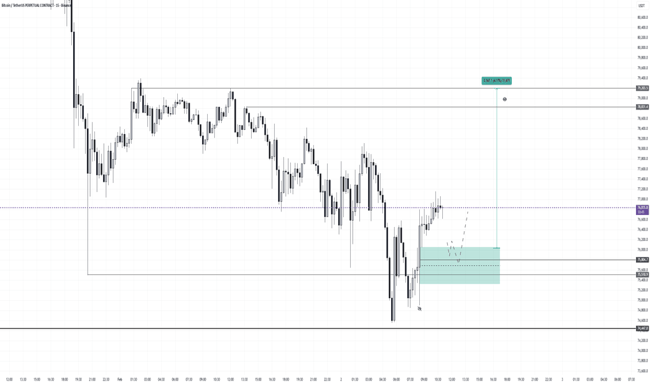 BTCUSD — Intraday Long (Expectation)I’m considering long exposure within the 75,400–76,000 range.