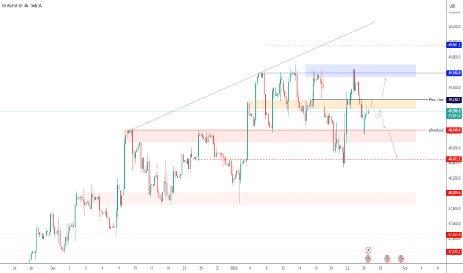 US30 Outlook : Momentum Still Favours upsideAt this stage, the focus remains on staying aligned with market direction and letting price confirm the bias, instead of trying to catch early reversals. As long as this momentum remains intact, the upside outlook stays valid.