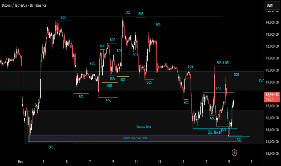 BTCUSDT | Current targets! (READ THE CAPTION)As you can see in the 2H chart of BTCUSDT, it has been going up and down between the IFVG and the Demand Zone, no clear view of how and when it'll make a move.