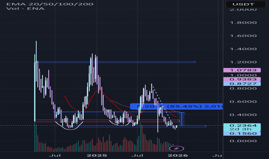 ENA has shown a strong rebound from its major support zone, confirming a short-term bottom formation after the recent deep correction.