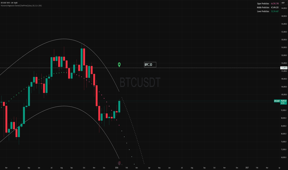 Bitcoin at the Late Cycle CrossroadsLooking at the Bitcoin Daily chart, this structure fits extremely cleanly into the historical 4 year cycle framework, and when combined with macro liquidity conditions, it strongly suggests the market is transitioning from a markup → distribution → corrective phase, rather than preparing for an immediate exponential continuation. Across previous cycles (2013–2014, 2017–2018, 2021–2022), Bitcoin consistently topped within a rising channel, formed a series of higher timeframe bull traps, and then broke down toward the lower bound of macro support zones. The current structure is visually and behaviorally consistent with those historical precedents.