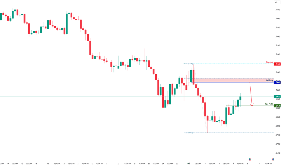 EURAUD: Retail Is 83% LONG… Next Leg Could Still Be DownLooking at EURAUD on the daily timeframe, my bias remains bearish. The structure is clear: lower highs, lower lows, strong downside impulses, and weak pullbacks. Price is currently around 1.70, a key decision area where the market could either build a technical retracement or continue directly toward lower demand zones.