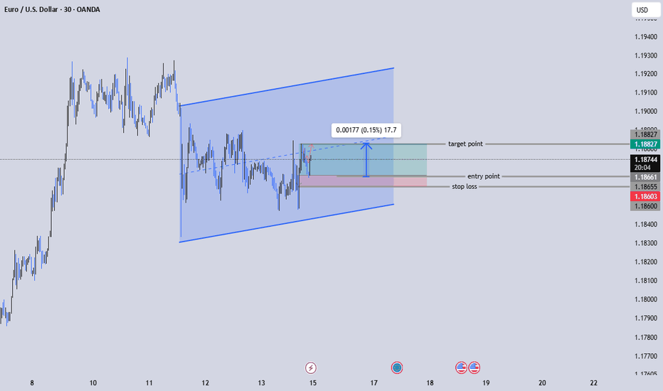 EURUSD 30M | Rising Channel Breakout Targeting 1.1882EURUSD 30M – Ascending Channel Breakout Setup