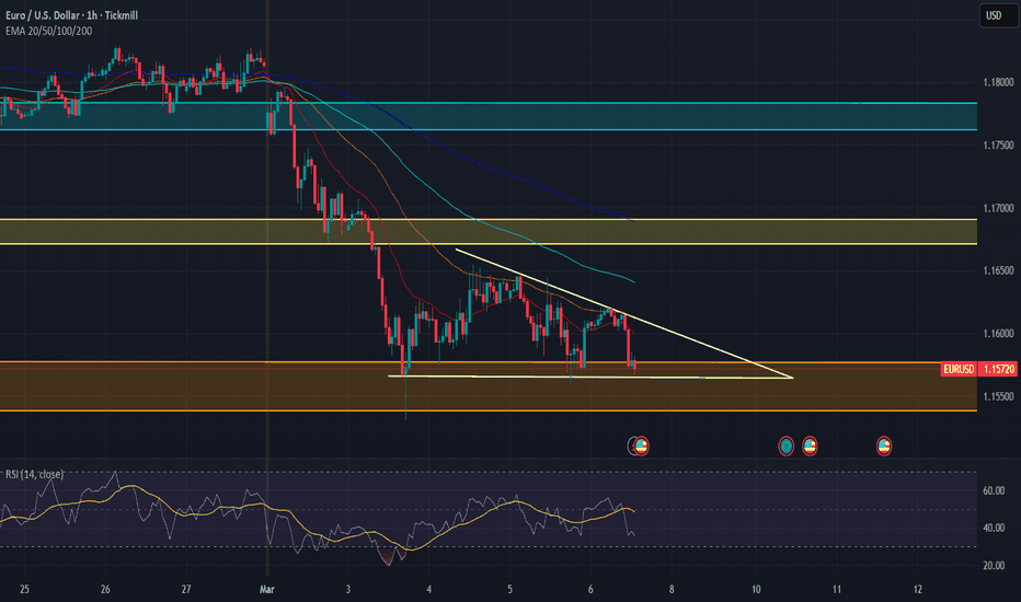 Price has already reacted from the demand zone around 1.1560–1.1580, showing potential for a short term bounce.