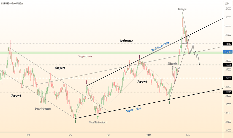 ● $EUR/USD is currently testing support around 1.1780 after forming a series of lower highs.