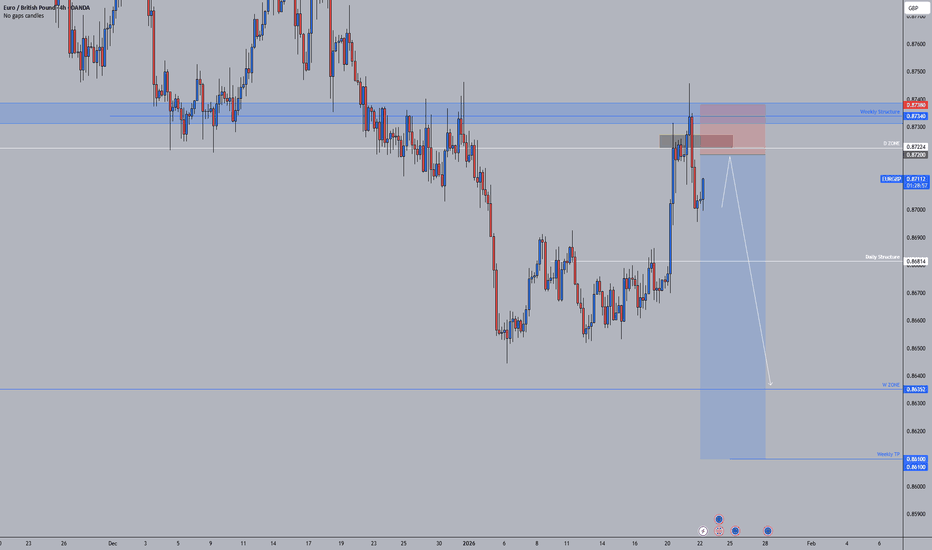 Expecting bearish continuation until the two Fibonacci resistance zones hold.