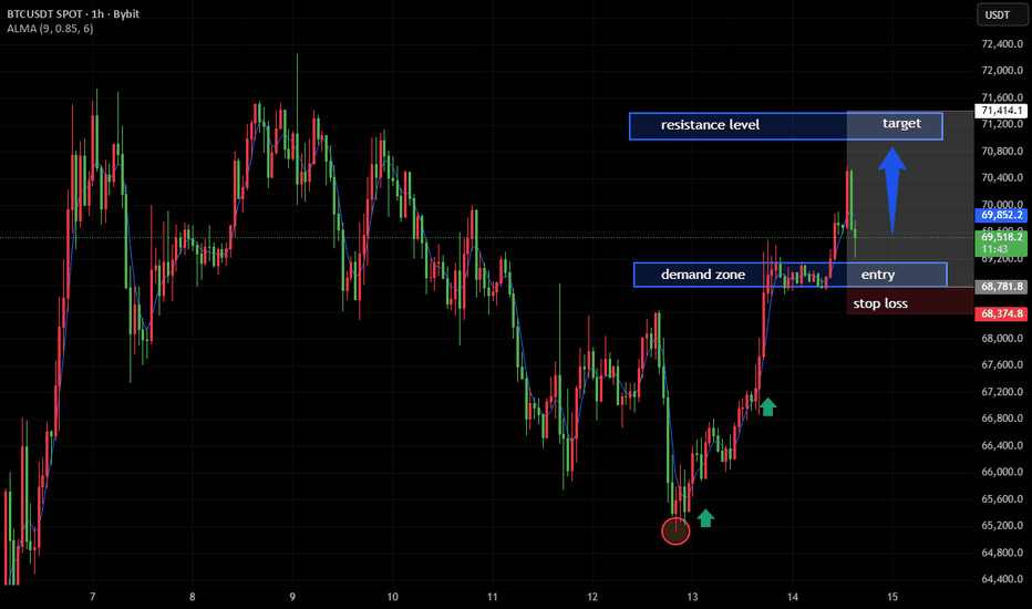 BTC is showing bullish momentum after reclaiming structure and holding a demand zone. As long as price remains above 68.7K, probability favors a push toward the 71.2K resistance area. A clean breakout above resistance could accelerate upside momentum.