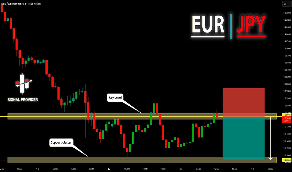 EURJPY clean break below the 4H supply with strong displacement confirms bearish BOS. Price swept buy-side liquidity and left a clear FVG imbalance. Expect a minor retracement into premium before continuation toward sell-side liquidity pools.Time Frame 4H.