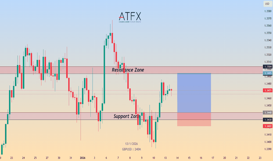 GBP/USD has rebounded from a well-defined support zone and is holding above key demand. As long as price remains supported above 1.3430, the bias favours a buy-on-dips strategy, targeting a recovery toward the 1.3500 resistance area.