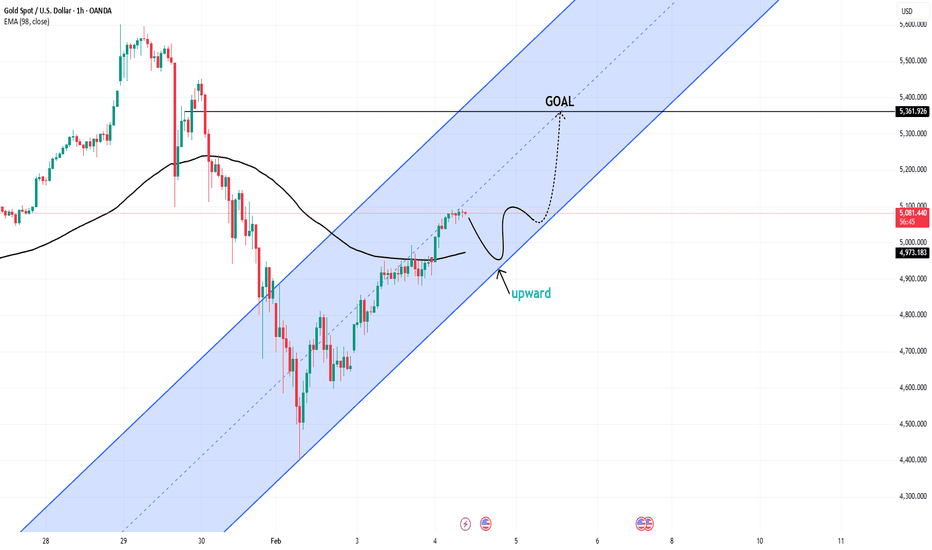 Gold Is Rising Inside a Channel — Structure Still Leads the MoveGold is currently advancing within a clearly defined ascending channel after completing a sharp downside impulse. The rebound from the recent low was decisive, showing strong bullish reaction and follow-through, which confirms short-term demand stepping back in. However, this advance is still unfolding inside a structured channel rather than a broad-based breakout, meaning the market is recovering in an organized way, not accelerating impulsively.