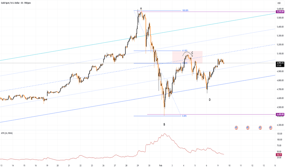 At the same time, analysis of the market structure based on the A–B–C–D swing points suggests that, following the burst of extreme volatility at the turn of the month (highlighted by the peak in the ATR indicator), the market is searching for a new equilibrium.