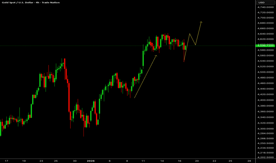 Gold Consolidates After Strong Rally: Bullish Structure Still InGold is currently digesting a strong impulsive move higher, with price transitioning into a consolidation phase rather than showing signs of trend failure. The structure suggests healthy pause and rebalancing, where momentum cools while buyers maintain overall control. This type of behaviour often reflects strength beneath the surface, as the market absorbs recent gains before revealing its next directional intent.