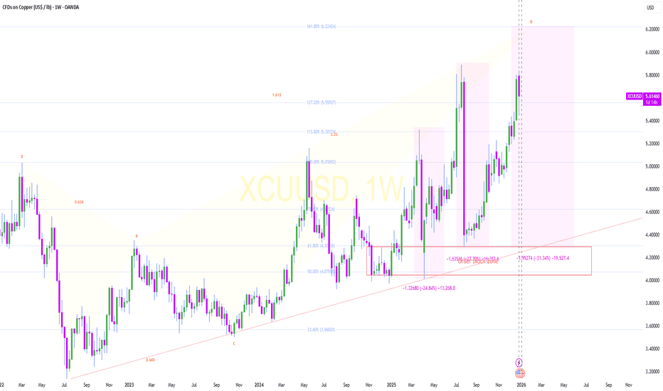 Harmonic completion at D (PRZ): Pattern completes near a key retracement/extension cluster (your harmonic ratios marked on chart).