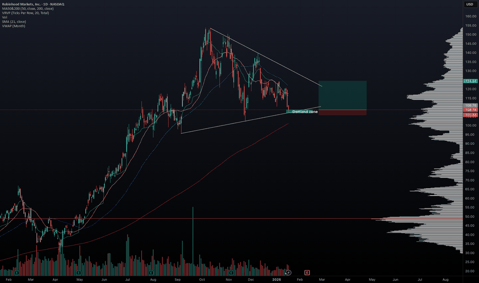 HOOD is currently trading above strong support near $113–$118. Price is consolidating in a healthy zone following the earnings spike.