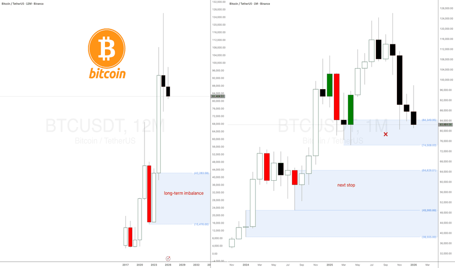 BitCoin long-term forecast 2026 dropping to $45k?Bitcoin monthly demand level is under attack. New low printed.
