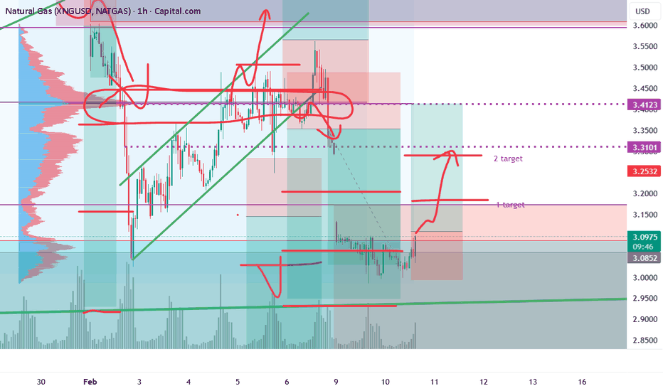 NatGas NatGas is mid term bullish for me... But there is liquidity around 3,30 and more under 3,20 $. We need to see short dump to start closing a big gap from Monday. Now it´s boring game of retail. Today is EIA report I hope some bear news, but I looking toward for wether after 14.-17. febuary. We will see.