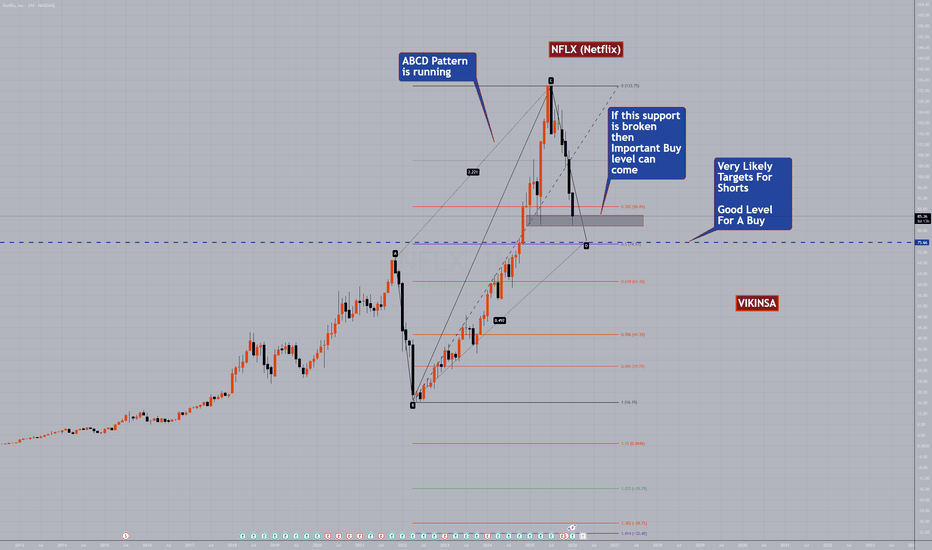 Netflix is running inside an ABCD pattern which can bring it down to the 50% retracement level around 75.66. However, this can only happen if the current support is broken and a bull trap is set. There are a few more levels which can be good levels to BUY or for Dollar Cost Averaging but they are not in the scope of this simple analysis as of now.