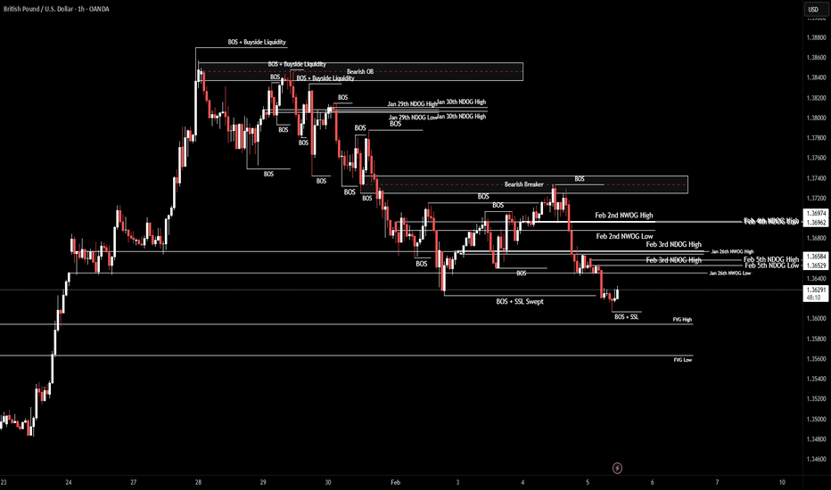 GBP/USD | Going for the Bearish Breaker (READ THE CAPTION)GBPUSD managed to sweep away the liquidity above 1.37154 and then dropped afterwards, currently being traded at 1.37120, moving towards today's NDOG at 1.36974. I would like it not to go for the NDOG, and going back up to test the Bearish Breaker.