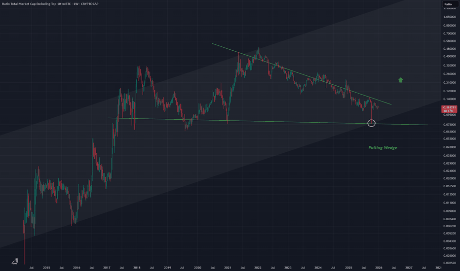 The foundations of the next Altseason are quietly being built. OTHERS / BTC ratio one of the most important indicators for altcoins market strength has just touched the bottom of its falling wedge structure after a major drop, exactly 1743 days since the last similar event.