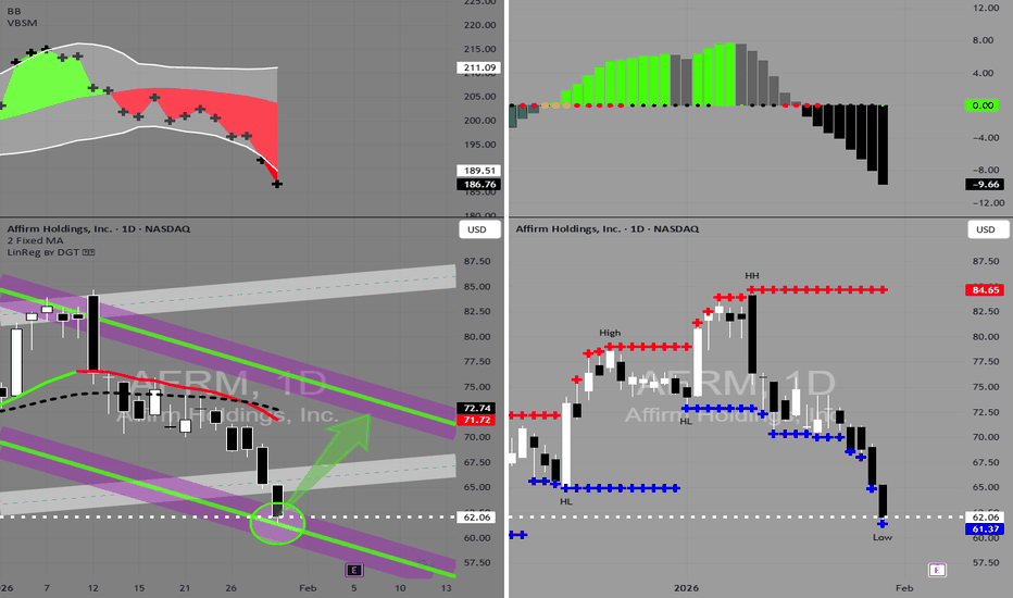 Money flow momentum is spiked negative and at bottom of Bollinger Band
