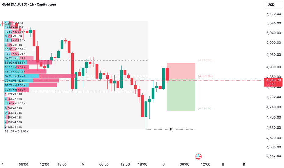 After failing to hold above the upper supply zone near 5,500, gold experienced a sharp bearish displacement, breaking previous structure and accelerating lower. However, price found strong demand around the 4,600–4,650 support zone, where selling pressure was absorbed.