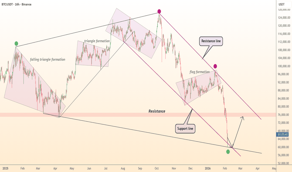 ● Multiple breakdowns of key patterns (flag, triangle), breach of $70 K and subsequent sell‑off indicate strong downward momentum and capitulation, setting stage for reversal bounce off structural support.