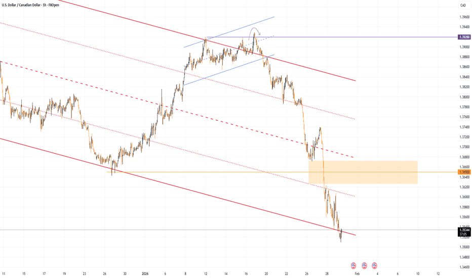 Thus, the USD/CAD exchange rate reflects the broader January trend, in which the US dollar is under considerable pressure due to geopolitical and other factors. Notably, even Powell’s comment about the “strength of the economy” failed to support the dollar. This suggests that the market may currently be driven not by past successes of the US economy, but by concerns about future uncertainty.
