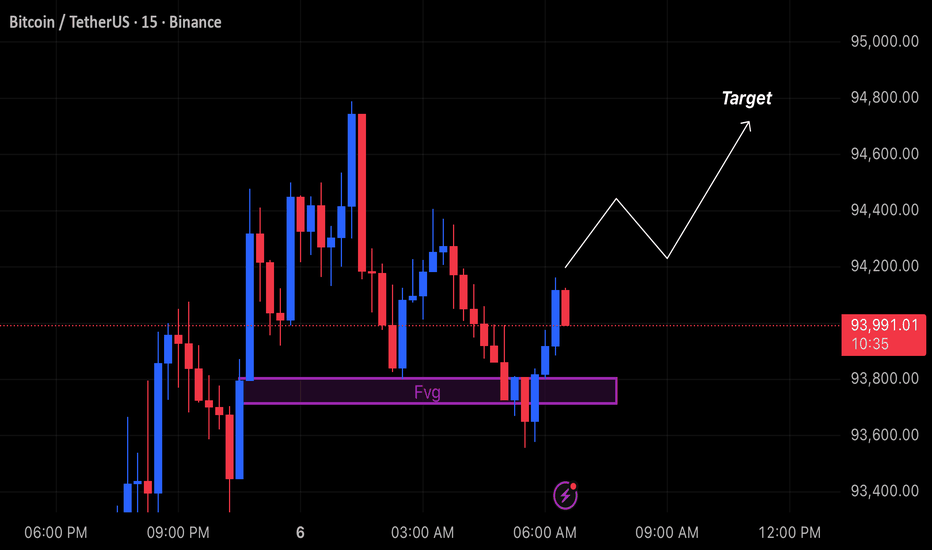 As long as price holds above the FVG, the bullish structure remains valid. Expect a potential pullback and continuation toward the upside, targeting the 94.5K–94.8K liquidity area next.