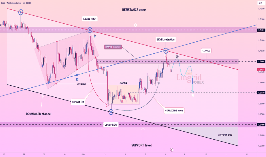 Lingrid | AUDUSD Price Compression Before Explosive MoveFX:AUDUSD perfectly played out my previous trading idea . Price has shifted into a tight compression phase after printing a clear higher low on the ascending trendline, suggesting downside momentum may be fading. Price continues to hold above the 0.7000 demand zone, while repeated reactions inside the range indicate accumulation. The market structure remains constructive as sellers fail to force acceptance below trend support.