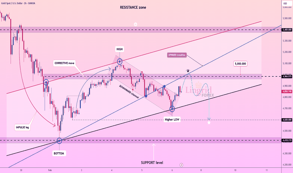 Lingrid | GOLD Weekly Analysis: Overbought Peak and Next MoveOANDA:XAUUSD perfectly played out my previous weekly idea . The market’s turbulent week saw traders shift focus to overbought conditions, with social media buzz signaling excessive bullish sentiment. The market’s rapid ascent into the $5,600 resistance zone triggered a sharp 16% correction, underscoring the fragility of momentum-driven rallies. As the weekly chart reveals a massive rejection candle, the narrative shifts from euphoria to caution, with technical indicators flashing early warning signs of a potential trend reversal. The 4H chart’s sell-off signal and price acceleration into resistance confirm a classic exhaustion pattern, highlighting how sentiment-driven spikes often precede corrective phases.