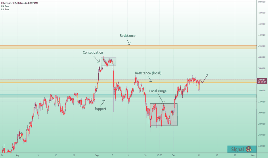 ETHUSD ❗ Strong Resistance level🤑ETH is unable to hodl above the $3600 area and broken the zone below. The candle didn't close yet, the price might just wick it off. If the candle closes below then we're expecting a dip till $3300 - $3376, which is a strong support level.