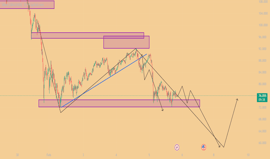 Current Structure: We are seeing a series of lower highs and lower lows. The price is currently testing a minor horizontal support zone around 72.000 - 74.000.