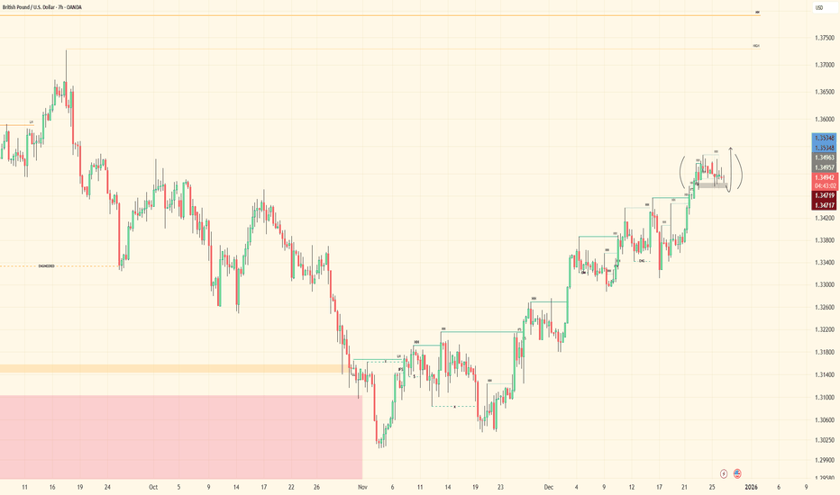 GBPUSD - Bullish ContinuationHTF structure remains bullish with price respecting higher-timeframe flow. The market continues to hold strength, and the overall narrative hasn’t changed — buyers remain in control.
